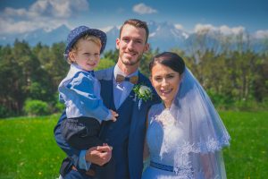Martin Kučera na svadbe so synčekom Maximom a manželkou Martinou.
