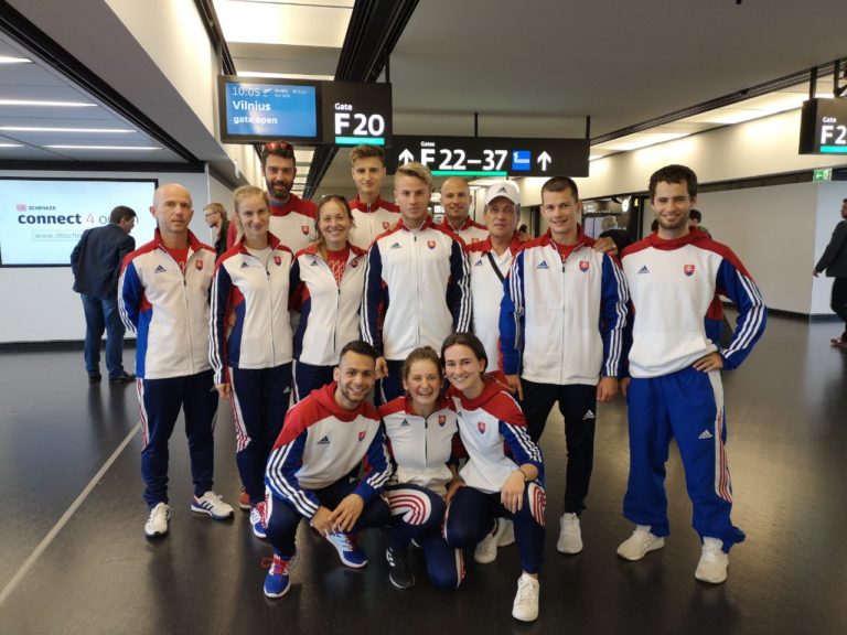 Slovenská výprava pred odletom na EP v chôdzi do Litvy.