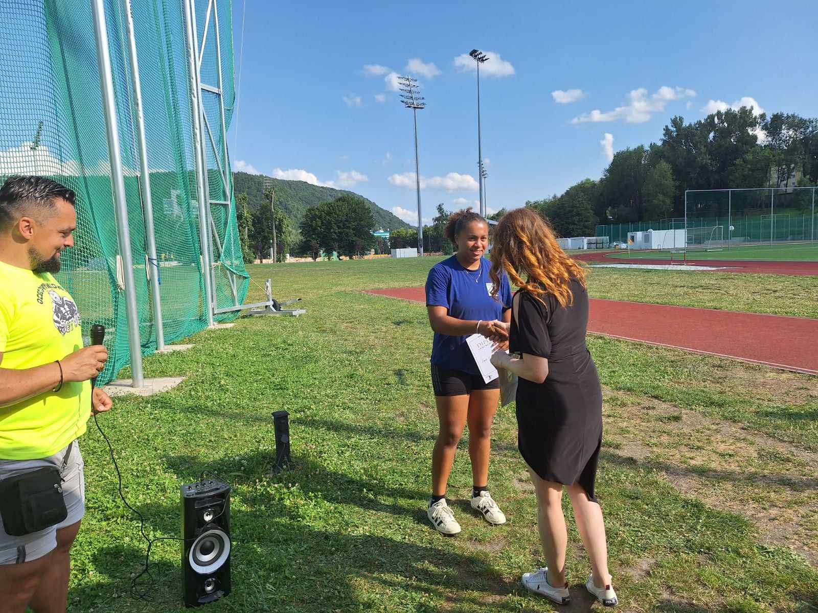 Ešte len 15-ročná Ema Ijeoma Okoyeocha (MŠk Žiar nad Hronom) dosiahla v hode diskom svoj osobný rekord 40,44 (dosiaľ 40,37), čím len o 6 cm zaostala za limitom na blížiace sa ME do 18 rokov, ktoré budú 18. – 21. júla práve na Štiavničkách. Zverenka Miroslava Rybárskeho si tým presne v deň uzávierky kvalifikačného obdobia výrazne vyžiadala pozornosť pred pondelňajším zostavovaním nominácie. Slovensko ako hostiteľská krajina totiž disponuje privilégiom pridať do tímu aj pretekárov bez limitu v disciplínach, v ktorých nemá limitára, čo je tento prípad. Okoyeocha dávnejšie hodila kladivom 55,89, v tejto disciplíne je nominačné minimum 57,00.