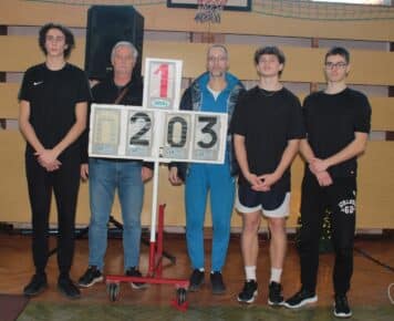 Na snímke zľava Filip Calík, rekordéri Jaroslav Rusnák a Luboš Komárek, Matej Michalko a Jakub Jelínek (3., 176 cm).