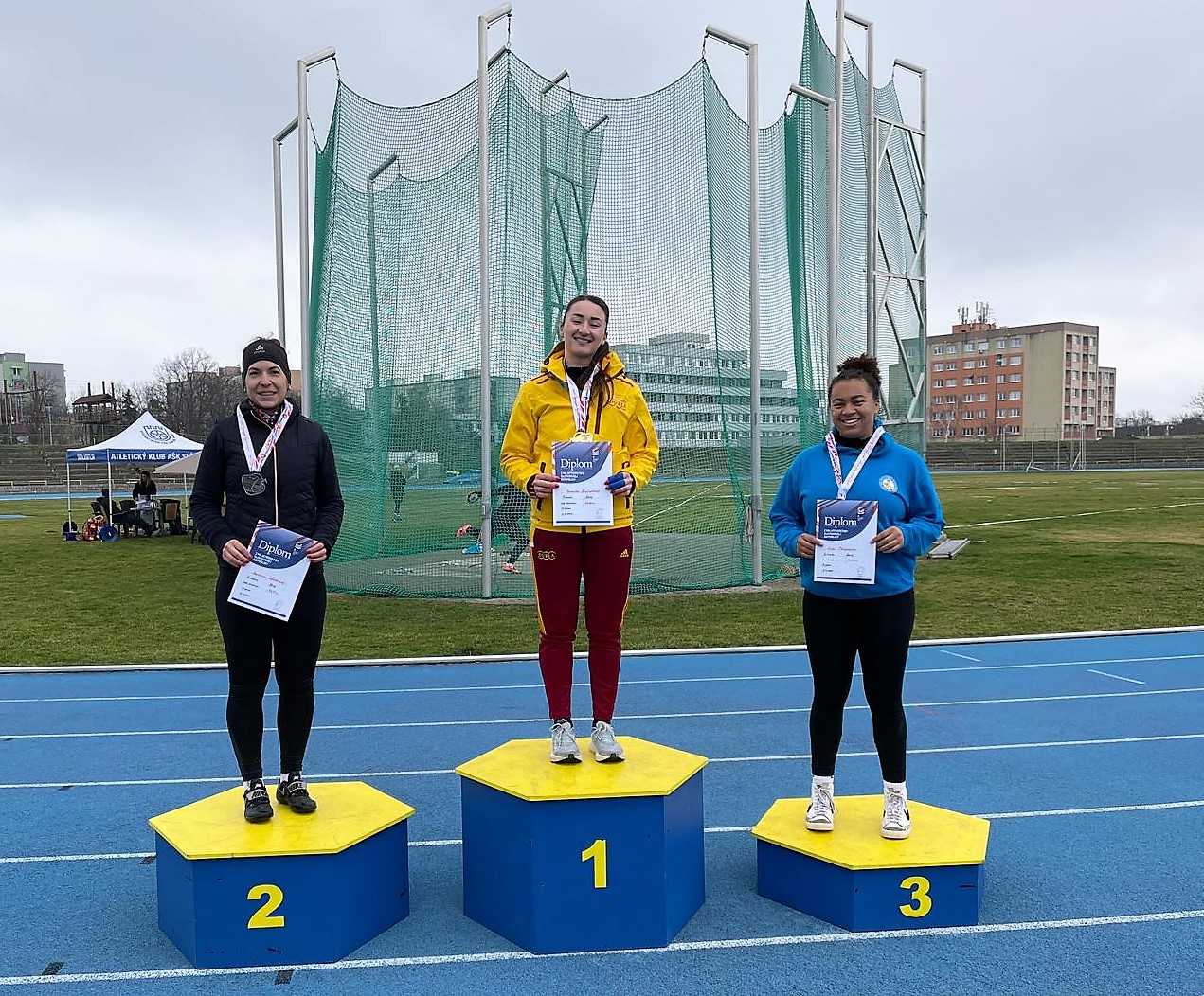 Home›Jednou vetou›Najhodnotnejší výkon na premiérových zimných majstrovstvách Slovenska vo vrhoch dosiahla v kladive žien Veronika Kaňuchová, ktorá v generálke na budúcotýždnový zimný Európsky pohár v Leirii hodila 62,61 m. V disku triumfovali favoriti, doterajší 5-násobní šampióni v tejto disciplíne Barbora Jakubcová (43,10) a Samuel Kováč (50,11).›TT-vrhy-1 – Kaňuchová