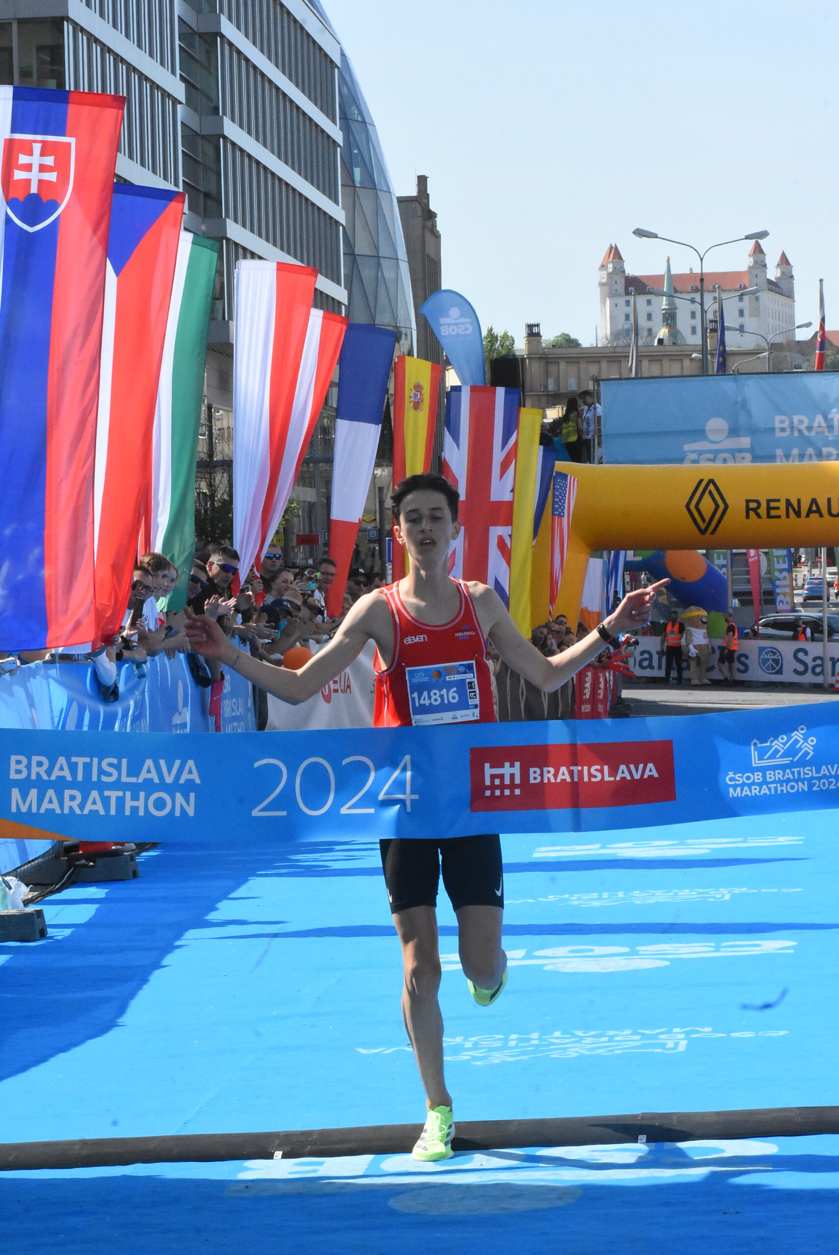 Home›Jednou vetou›Parádny výkon predviedol v minimaratóne na 4,2 km v rámci 19. ročníka ČSOB Bratislava Marathon talentovaný Alex Hulka zo ŠK Jablonoica. Zvíťazil časom 12:38 min a obhájil lanský triumf s náskokom 41 sekúnd pred Alexandrom Jablokovom. Zo žien bola najrýchlejšia Lenka Kotianová (ŠKP Žilina, 15:03). Na 10 km obhájil prvenstvo Talian Marco Borneti (34:00), zo žien bola najlepšia Barbora Brezovská (39:45).›Hulka Alex foto Ján Luky