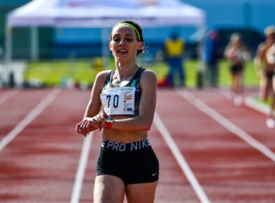 Na snímkach Peter Ďurec a Katarína Pejpková na M-SR 2023 v behu na 10 000 m v Žiline a Martin Rusina.