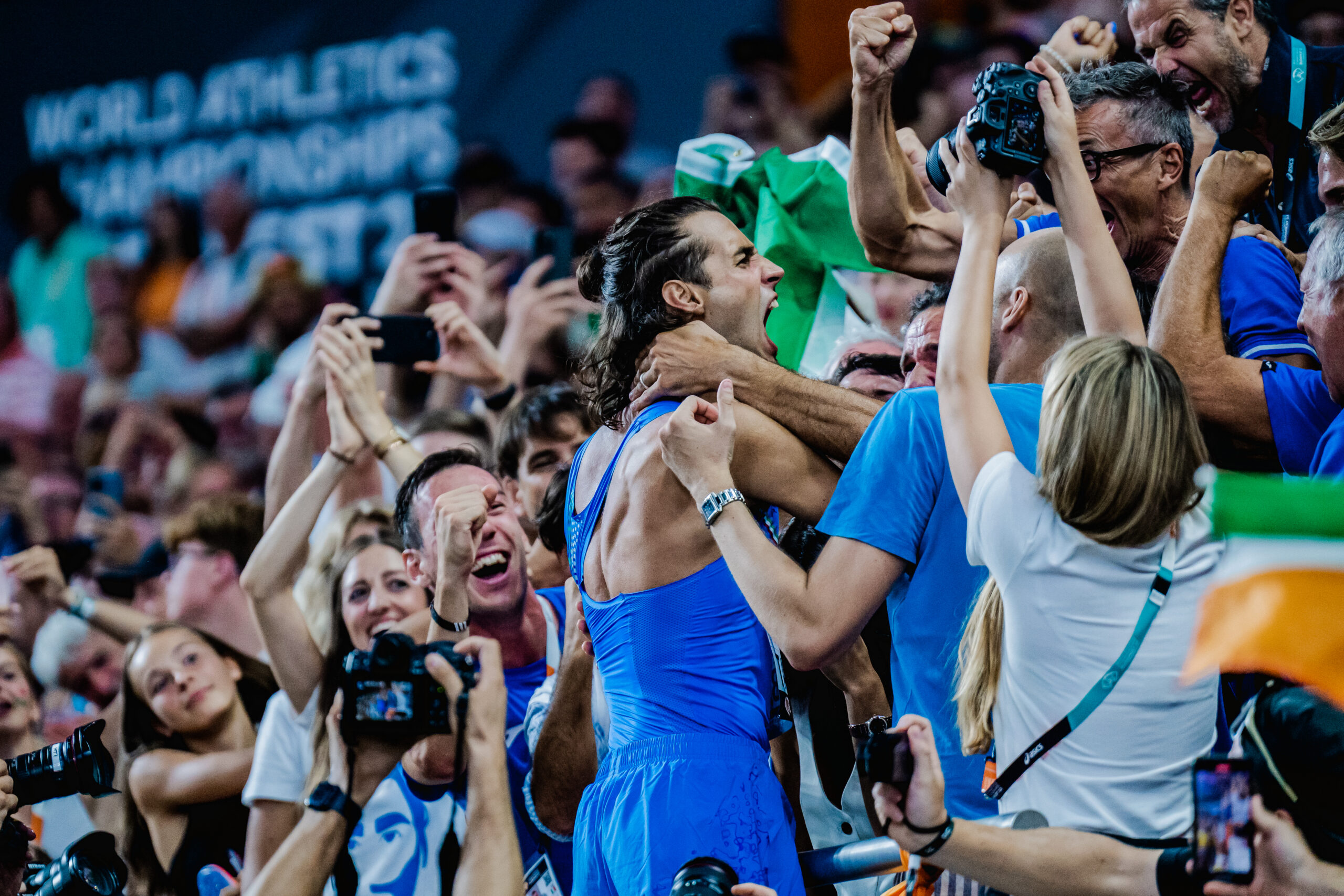 Nebol by to Tamberi, aby svoje predstavenie nestupňoval. Gladiátorsky si strhol tričko, vybozkával sa s manželkou, vyobjímal s bratom, ktorý – pravidlá, nepravidlá – vhupol cez bariéru na dráhu. Na dôvažok si Gianmarco odbehol do čestnej lóže za talianskym prezidentom Sergiom Mattarellom sprevádzaným šéfom EA Dobromirom Karamarinovom.