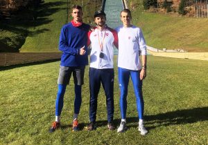 Šimon Bujna na tohtoročnom víťazom viedenskom mítingu seriálu Austrian Top Meeting, s Pavlom Maslákom v dueli na 200 m v 1. kole českej extraligy 2020 a na lanskom jesennom sústredení na Štrbskom Plese s Martinom Kučerom (vľavo) a trénerom Radoslavom Ivanom.