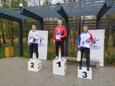 Na stupni víťazov traja najlepší veteráni na M-SR v krose v Šali (zľava): Miroslav Peško, Martin Knapčok a Pavol Masaryk.