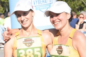 Dve najrýchlejšie ženy v cieli – vpravo víťazka Mária Katerinka Czaková a vľavo druhá Monika Hornáková.
